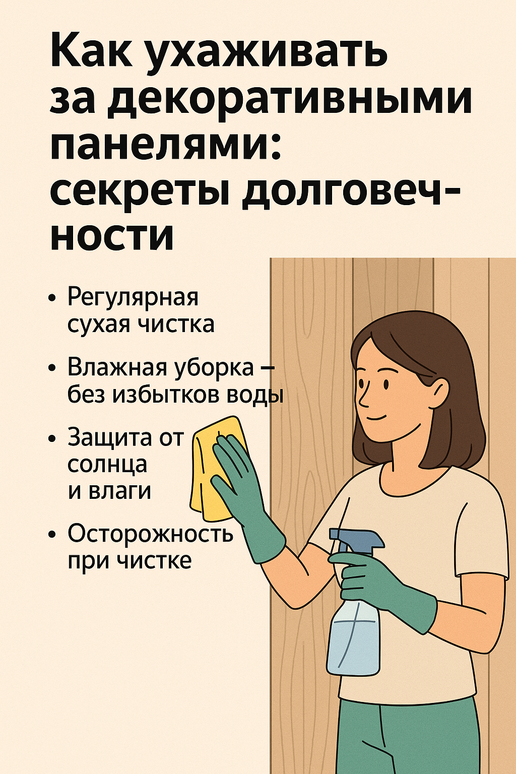Декоративные панели — это инвестиция в стиль и комфорт вашего дома. Следуя простым правилам ухода, вы сохраните их красоту и функциональность на долгие годы. Регулярная уборка, защита от агрессивных факторов и аккуратность в обращении — вот три кита долговечности ваших панелей.