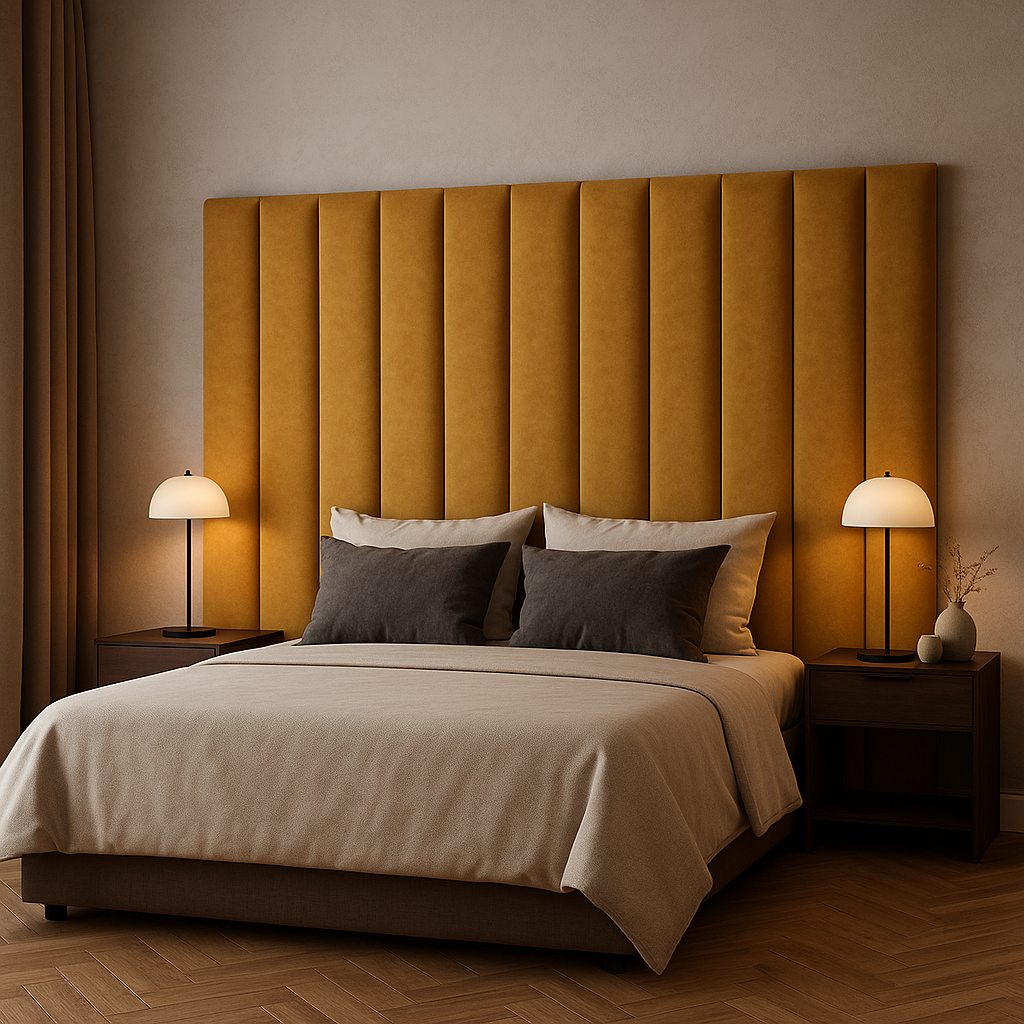 Чаще всего панели размещают у изголовья кровати — это создаёт уютную, защищённую зону отдыха. Также они визуально подчёркивают геометрию и дополняют текстиль в интерьере.